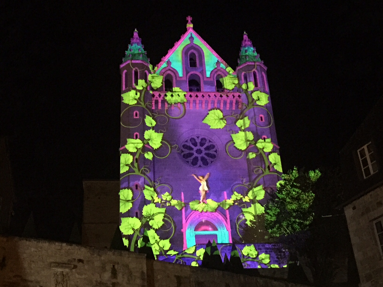 Bien plus qu’une simple vidéo-projection, la technique Video Mapping utilise tout élément de l’architecture pour développer des animations spécifiques. Ainsi sur la façade de l’église, toute partie, tout relief, peut devenir animé. Par exemple la rosace tourne et ouvre sur un autre monde, ou bien peut devenir une horloge… Tout cela renforce l’immersion du spectateur en mêlant le réel et l’imaginaire..