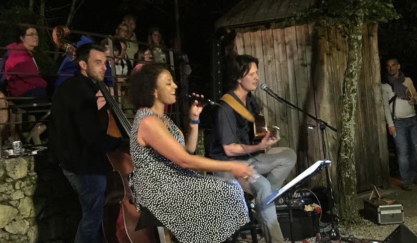 >>> Article avant la soirée >>> Samedi 20 août 2016 à 20h30 à La Feuillade, un concert de jazz métissé, pop, swing, chanson française aura lieu avec Karima (voix) & Olivier (guitare), accompagnés d’Adrien (contrebasse). Rythmes brésiliens et standards du jazz et de la pop seront au programme, sur des reprises colorées et des musiques originales. Parmi leurs compositions, Dans des versions très jazzy et avec un bon feeling, le groupe reprend des titres comme « Sympathy » des Rare Bird ou « Une belle histoire » de Michel Fugain. La soirée est proposée dans un décor cabaret avec le Foyer Rural.
