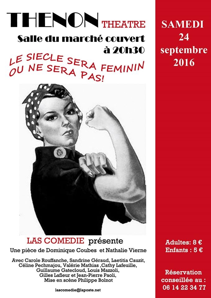 Samedi 24 septembre 2016 à 20h30 à Thenon, salle du marché couvert, une soirée théâtre est proposée par la Compagnie Las Comédie dans « Le siècle sera féminin ou ne sera pas ». 10€ adulte et 5€ enfant. Réservations au 06 14 22 34 77