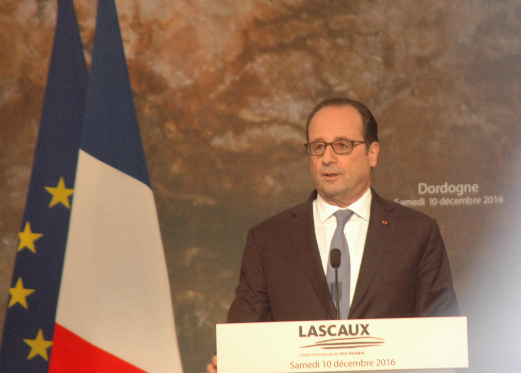 Lascaux 4 a été inauguré par François Hollande, président de la République, samedi 10 décembre 2016, soit cinq jours avant l’ouverture officielle du site au public. Le Centre international d’art pariétal de Montignac en Dordogne présente plusieurs atouts. La célèbre grotte préhistorique a été reproduite à l’échelle et en quasi-intégralité, et la qualité des fresques et des reproductions est soulignée par tous. L’obscurité (*), la température intérieure et le taux d’humidité ont été scrupuleusement reproduits, tout comme les oeuvres révélées avec une précision chirurgicale de 16 points de mesure au millimètre carré ! Le Chef de l’Etat a parlé aussi du « plus architectural’ du bâtiment, des explications « scientifiques » autour de l’art pariétal, et d’un site qui permet d’ouvrir la culture au plus grand nombre… Le Chef de l’Etat n’a pas manqué de féliciter les artistes peintres pour cette réplique « parfaite ». Les autres atouts de la visite sont l’équipement numérique remis à chaque visiteur, enfant ou adulte, et les salle d’interprétation et galerie interactive qui suivent le fac-similé.
