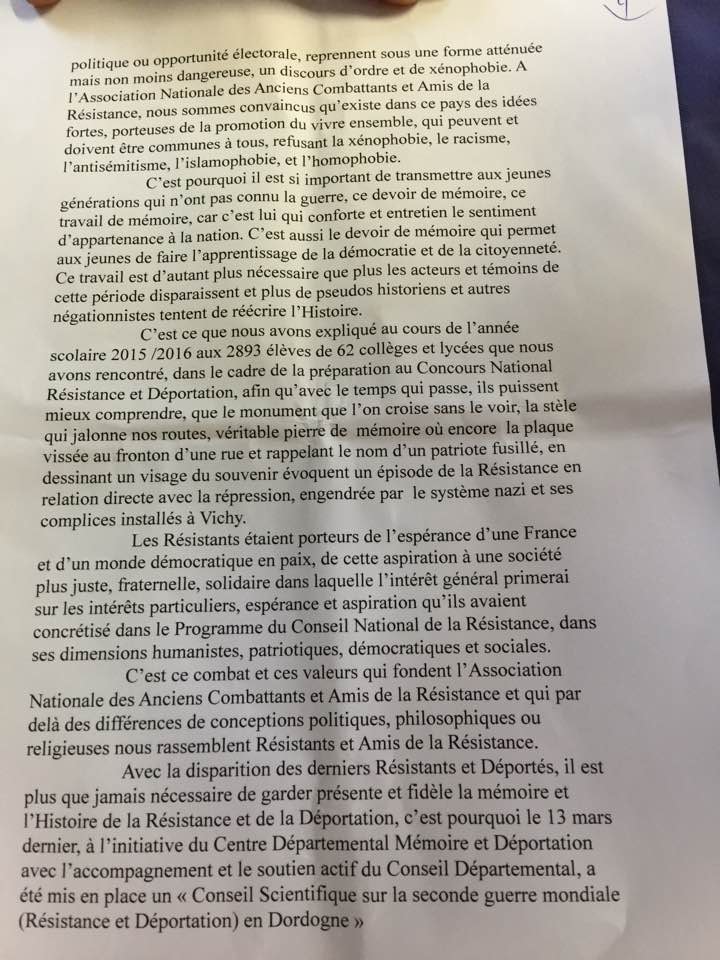 – Photo 2 : 1ère page du discours de Lucien Cournil… Les autres pages suivent…