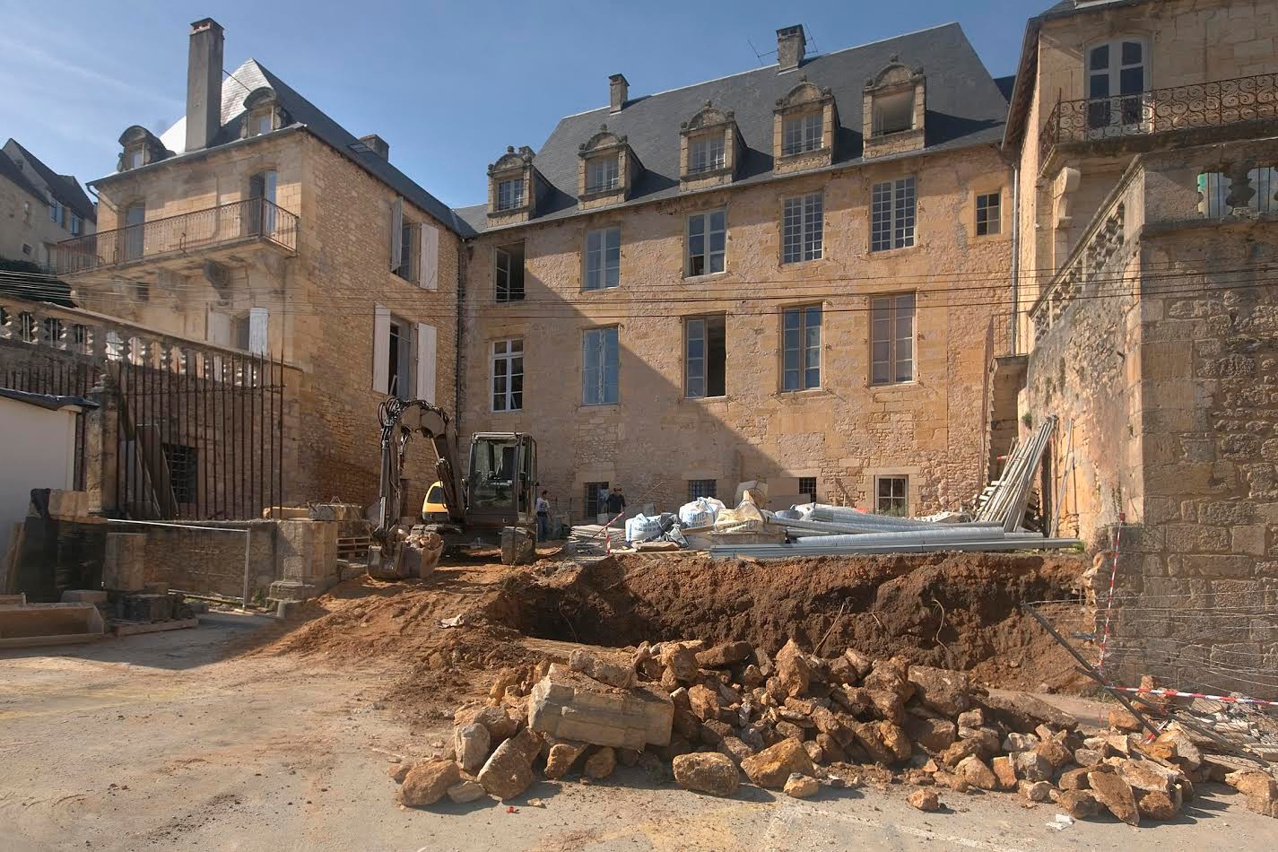 Pour ceux qui sont passés récemment par la place d’Armes, un bien bel endroit, ils ont remarqué les travaux dans et autour du local au débouché de la rue Lafitte, dans la maison natale de Jules Clédat face au Flannagan’s. C’est Emmanuel Sardan, fils de la famille Sardan, propriétaire du restaurant Le Bareil à La Chapelle-Aubareil. Le trottoir a été élargi, ce qui ne gêne en rien la circulation, et offre un espace pour installer une petite terrasse. Ce local avait été un temps divisé en deux, c’est là qu’avait été ouvert le premier UniVert, le salon de thé bio et végétarien qui a depuis migré place de l’église. Donc, la place d’Armes va revivre avec ce bar à vin et tapas, espérons que d’autres établissements s’ouvrent sur cette place et la fassent vivre.