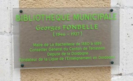 Né en 1846 à La Bachellerie, Georges Fonbelle avait été notaire de la commune avant d’en devenir le maire, puis conseiller général et député. En 1881, il fonde le cercle périgourdin de la Ligue de l’enseignement et a beaucoup oeuvré au développement des bibliothèques municipales.