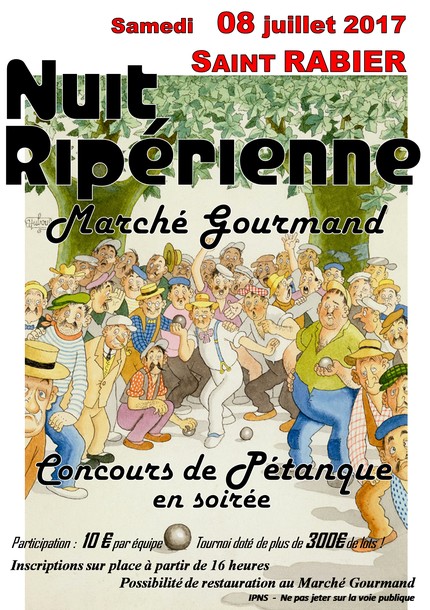 La première nuit ripérienne de l’été a lieu ce samedi 8 juillet 2017 avec un tournoi de pétanque et un marché gourmand en nocturne.