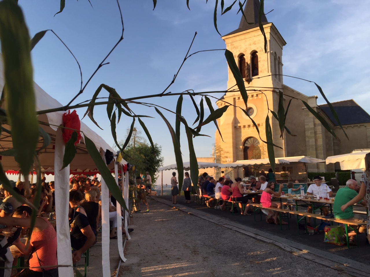 Article et photos de l’été 2015. De longues tables sous toile installées au pied de l’église qui domine le coteau, chacun a trouvé sa place pour déguster son repas. De nombreux producteurs sont là : boucher, boulanger, pâtissier, fromager, boissons, frites, glaces… Le premier marché nocturne de Châtres était très réussi le lundi 6 juillet 2015. La chorale occitane de Condat-Terrasson menée par Félicie Verbruggen a apporté sa couleur joviale et guillerette à la soirée. Les participants venaient pour beaucoup de villages environnants, les touristes n’étant pas encore arrivés en masse…