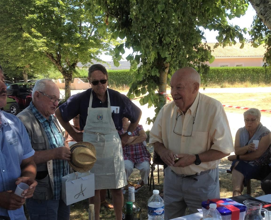 Le doyen de l’équipe « sanglier », Robert Brazon, a ensuite remis à M. Loquen la médaille d’argent du Sanglier, « en témoignage de son abnégation et de son dévouement ». Le président a été très touché par cette marque de sympathie et a remercié tous les chasseurs et les participants.