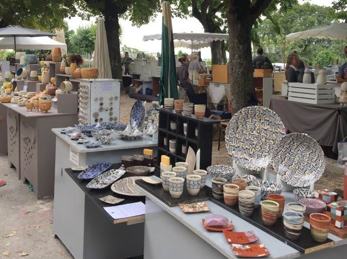 – dimanche 30 juillet, marché de potiers (photo 2), atelier de tournage au tour à pied (Y.Pichon du centre culturel de Terrasson), atelier de décoration sur porcelaine (Géraldine de Pompignan : les ateliers de Chaillot, à Paris), portes ouvertes à la culture occitane par l’Association Sarladaise de Culture Occitane et le groupe Loudaki de Condat-Animation