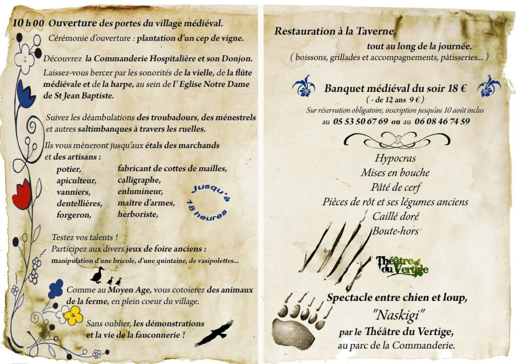 Dimanche 20 août 2017, à Condat-sur-Vézère, près de Terrasson, la première fête médiévale locale aura lieu dans la rue des Barris, soit à partir de la boucherie et jusqu’à l’église, ainsi que rue de la Commanderie, à partir de 10 heures et jusqu’au soir. Cette fête sera organisée par Condat Animations. Cette manifestation a pour […]
