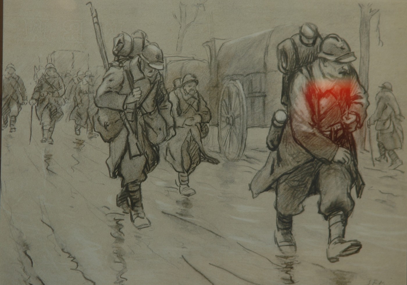 Au deuxième étage, l’exposition SEM se prolonge sur le thème de la Grande Guerre 14-18, avec 12 bâches de 21x2m imprimées recto-verso, des silhouettes grandeur nature (Sem et un soldat) et de multiples illustrations.