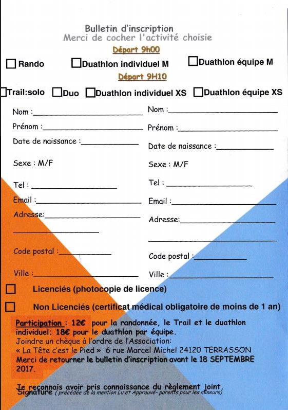 C’est déjà la 7ème édition… « Nous avons commencé en 2011 à la création de l’association La Tête C Le Pied » dit Hélène Lasternas, la présidente. « Les premières années, nous avons fait que de la course à pied, de la marche et de la marche nordique, et depuis trois ans, nous avons rajouté le duathlon (trail-VTT-trail), et cette année nous proposons aussi un trail de 22 km. Un trail en duo de 8km chacun est aussi mis en place. C’est sportif, il faut être un p’tit peu entraîné, car les VTT vont sur Villac, Le Mas, Quillé, Peyrignac, etc. pour les gens qui connaissent ».