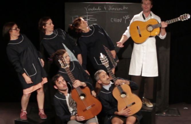 Après avoir accueilli l’excellent spectacle « Album de famille » en octobre 2013, la compagnie du Sans souci revient avec sa dernière création « Carnet de notes » ! Encouragés par leurs copains, enguirlandés par leurs parents, félicités par le conseil, les enfants de cette classe sont enchantés par une vingtaine de chansons du répertoire francophone. Ils sont 6. Ils paraissent 30. Ils sont enfants. Ils sont parents. Ils sont enseignants. Ils sont filles et garçons. Ils nous racontent leur histoire, leurs histoires d’école, des écoles. De la maternelle à l’université, du matin jusqu’au soir, du 20ème siècle à nos jours, en passant par la cantine et la cour de récré, ils nous transmettent leurs souvenirs, leur vécu. Des filles et des garçons, des voix et des notes pour raconter l’histoire de tout le monde, l’histoire collective de ces journées sur les bancs de l’école, à suivre à la lettre et à la ligne le professeur et la maîtresse.