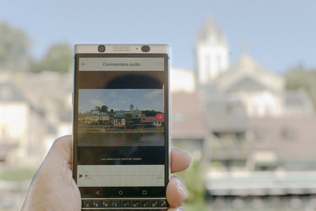 La tendance est nette, le smartphone est maintenant l’outil privilégié du touriste pour s’informer et se guider (voir en bas de page). Même les zones les moins bien équipées en réseaux 3G et 4G sont touchées et doivent s’y adapter, d’autant que la 5G pointe son nez et sera disponible alors que le territoire sera loin d’être totalement connecté à la fibre. Le débit de la 5G pourrait être jusqu’à 100 fois supérieur à la 4G et arriverait en France dès 2020. En Périgord, son déploiement devrait être bien plus léger que l’installation de la fibre… Mais déjà, les usages se multiplient et les offices de tourisme proposent leurs propres applications, en dehors de leurs sites internet qui sont eux bien évidemment accessibles aux smartphones. Deux applications pourraient devenir incontournables : le Géocaching et l’audioguide.