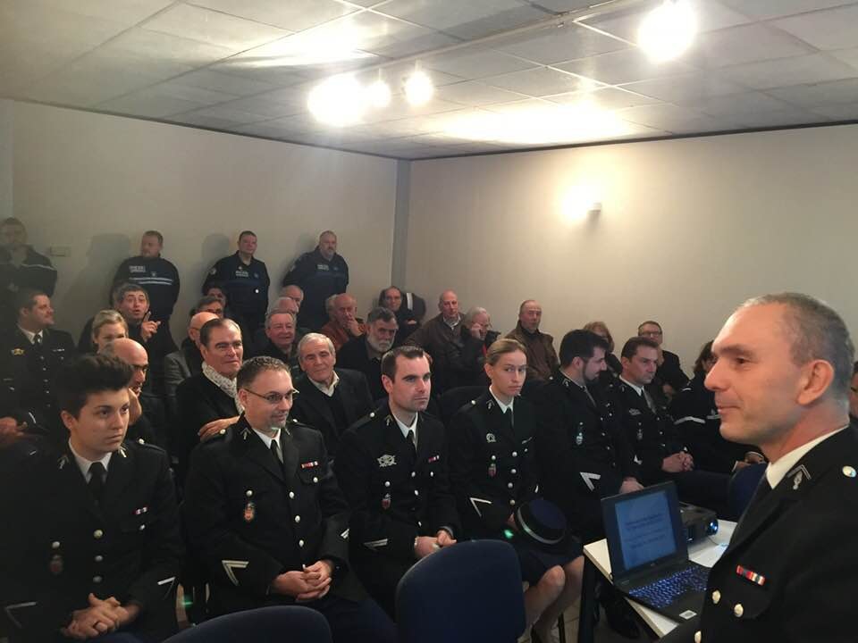 Devant les élus du Terrassonnais et du Montignacois, les objectifs 2018 de l’équipe du lieutenant Mondin (photo 2, premier à droite) ont été présentés : « sanctuariser la mission de contact, avec des binômes qui se consacrent à raison d’une demi-journée par semaine à la recherche exclusivement de renseignements, nous allons ainsi revenir au contact de nos concitoyens » dit le commandant. « Nous poursuivons la lutte contre les cambriolages, la lutte contre l’insécurité routière, puisque déjà trois décès ont eu lieu sur les routes de Dordogne depuis le 1er janvier, et nous développons le renseignement en matière d’atteinte à la sécurité publique ».  La signature de la convention « participation citoyenne » pourrait se faire avec la ville de Terrasson dès le premier semestre. Enfin, on notera que chaque gendarme est désormais équipé d’un smartphone « dans lequel il a, ni plus ni moins, la totalité des applications qu’il aurait au bureau ».