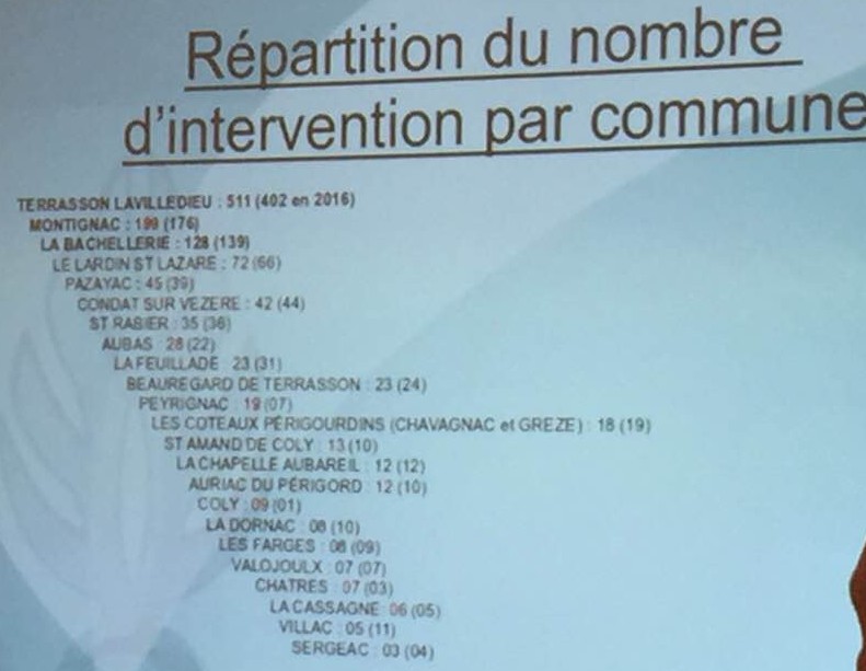– Un service de SMS a par ailleurs été mis en place pour les élus et va s’élargir aux adjoints et aux professions sensibles. Le tableau des communes qui ont sollicité le plus la gendarmerie pour une intervention en 2017…