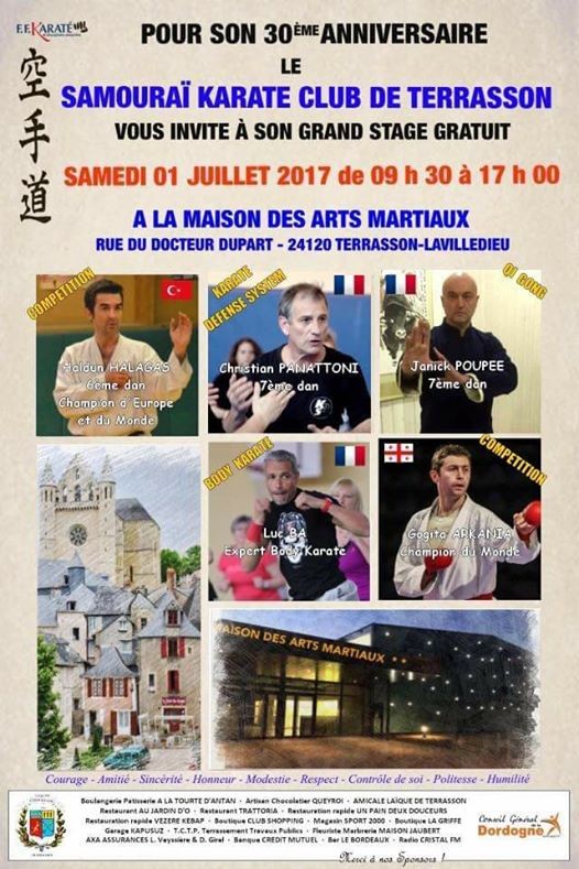 Les 30 ans du Samouraï Karaté club de Terrasson ont permis de rassembler près d’une centaine de pratiquants, samedi 1er juillet 2017 toute la journée, à la nouvelle maison des arts martiaux attenante au gymnase municipal de Terrasson.