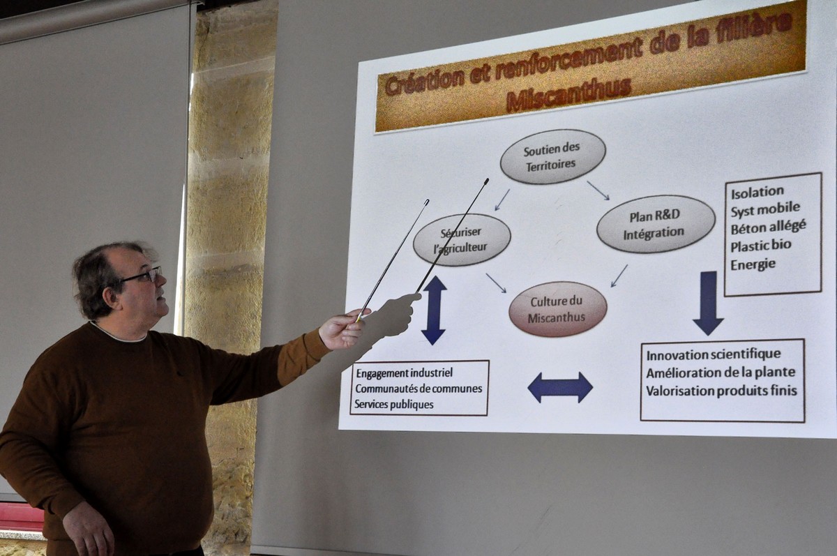 Un champ 5 ha de miscanthus devrait voir le jour chez Dominique Bosche au lieu-dit Champagnac à Badefols-d’Ans, au prochain printemps. À cette occasion, Gerolf Jacobs a animé une réunion d’information, vendredi 2 février, salle du foyer de Badefols-d’Ans, sur les diverses utilisations du miscanthus, en présence d’une quinzaine de personnes. Appelée aussi « Herbe à éléphant », elle fait partie des graminées venant d’Afrique et d’Asie. Les tiges ont des feuilles linéaires lancéolées, arquées et caduques. Les panicules terminales se forment de septembre à novembre et sont composées d’épillets soyeux. À l’automne, la touffe prend des couleurs flamboyantes, ce qui est très intéressant d’un point de vue ornemental.