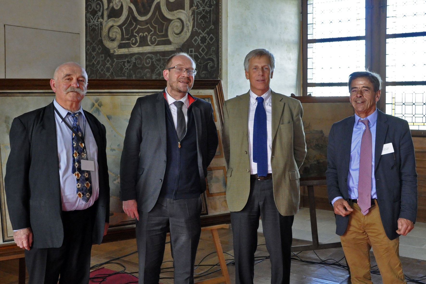 Article du 10 octobre 2017 : Journée prestigieuse pour HNP. L’association Hautefort Notre Patrimoine (HNP) a organisé une journée exceptionnelle, samedi 7 octobre 2017, à l’occasion des 20 ans de l’association, dans le cadre du château de Hautefort. Cette rencontre qui avait pour thème les jardins s’est déroulée dans la prestigieuse salle des cheminées du château à laquelle ont assisté 160 personnes, en présence d’Yves Moreau, premier magistrat d’Hautefort, de Dominique Bousquet et Francine Bourra, conseillers départementaux du Haut Périgord Noir.